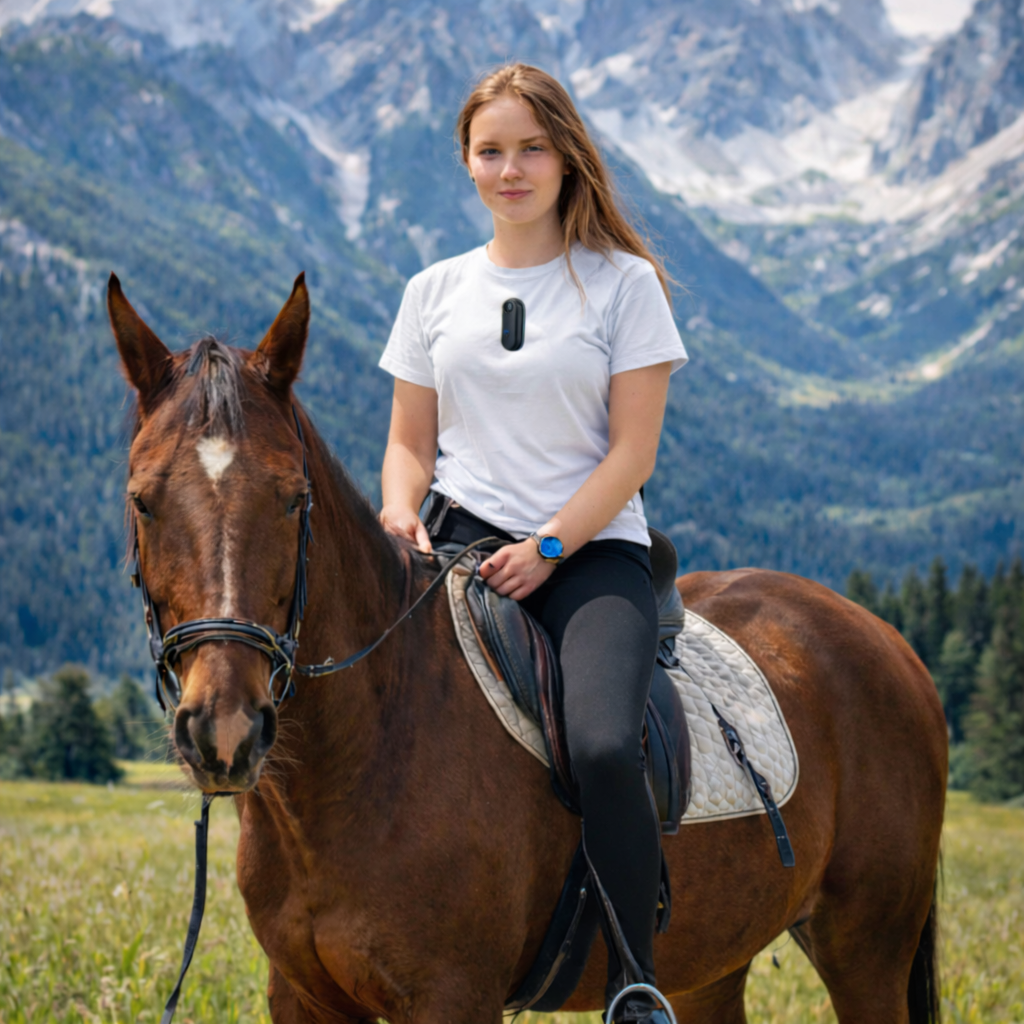 Jazda konna z bezprzewodową kamerką pozwala uchwycić naturalne, dynamiczne ujęcia POV, pokazujące tempo galopu, pracę konia i emocje jeźdźca, zapewnia stabilny obraz, wysoką jakość nagrania oraz wyjątkową perspektywę z siodła podczas treningów.